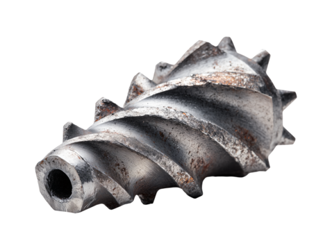 Heavy industrial drill bit screw head isolated on transparent or white background, png