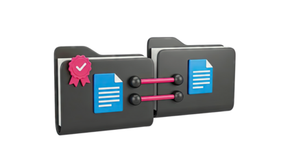 Yellow 3d folder icon representing data organization, file storage, and document archiving on transparent background