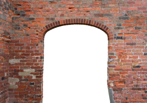 Antique brick archway brick wall a grand entry way on white background,png
