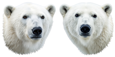 Two Polar Bear Heads, Close-up Portraits, Isolated on Transparent Background, Polar bear, Arctic animal, wildlife