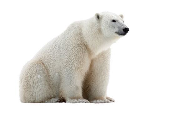A majestic polar bear sits calmly, showcasing its thick white fur, isolated on a vibrant transparent background, looking off to the side. background removed