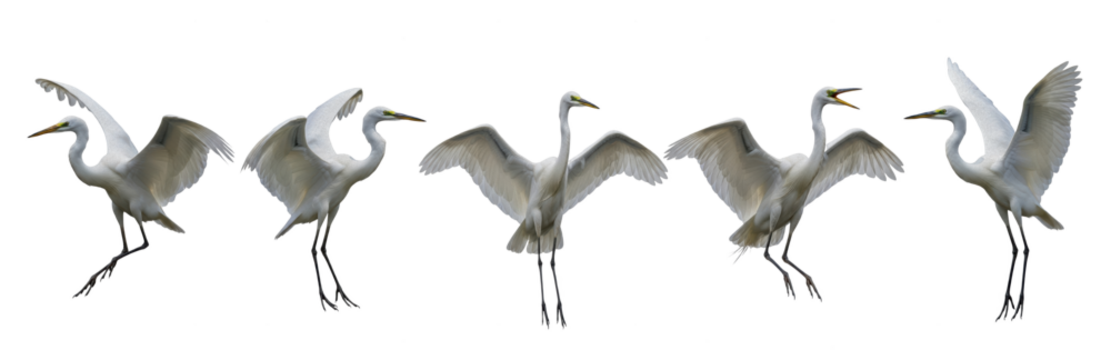 Set Of Great egret isolated on transparent background, Ardea alba, PNG