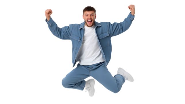 Leaping for Joy: A jubilant individual, arms raised in triumph, levitates in mid-air, embodying exhilaration and success.