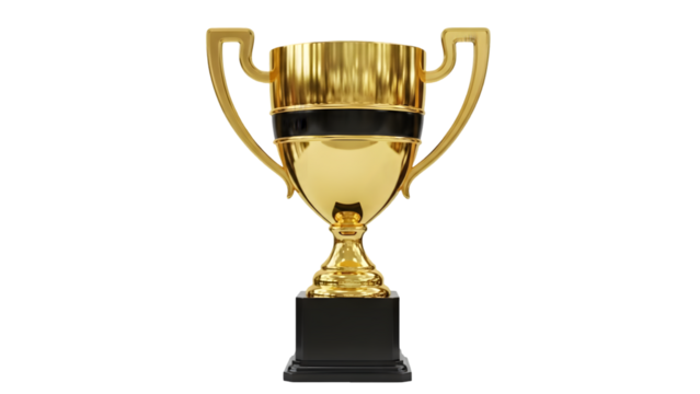 Golden trophy with black band isolated on transparent background