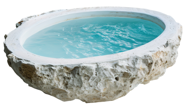 A luxury pool with a stone rim. The water appears turquoise. The background is transparent, making it suitable for various uses