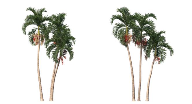 Betel nut trees or Areca nut palm trees on white background, clipping paths png