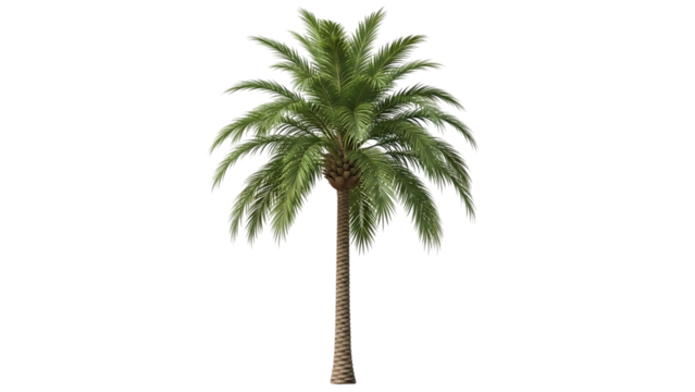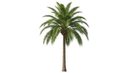 Palm Tree on. A single palm tree stands tall against a plain white background. Its green fronds and textured trunk are prominently displayed in this minimalist composition.