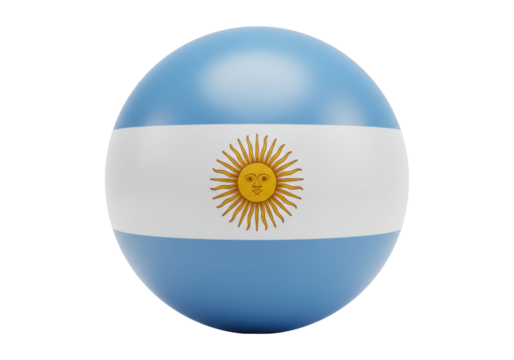Argentinian flag waving on a flagpole against a white background, symbol of Argentina and patriotism