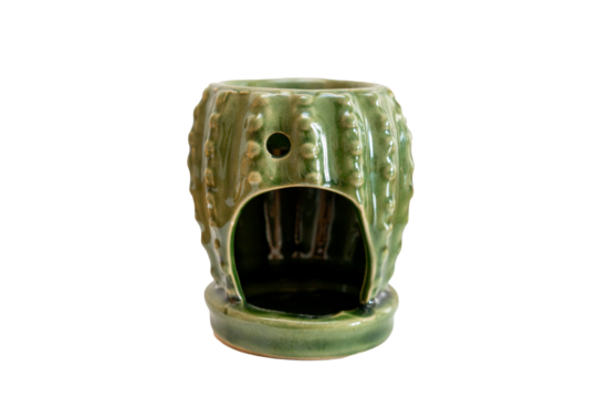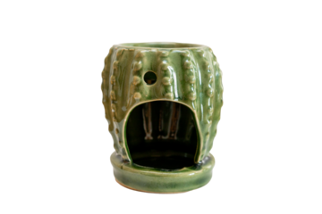 Close up photo of a candle holder. White background. Oil burner for essential oils.