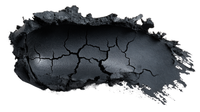 Detox charcoal mask smear with cracked clay texture, ultra-realistic detail, PNG