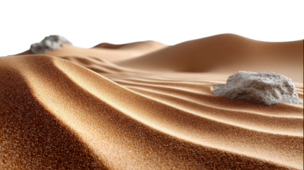 Golden desert sand dunes with rippled textures under bright sunlight isolated on transparent background