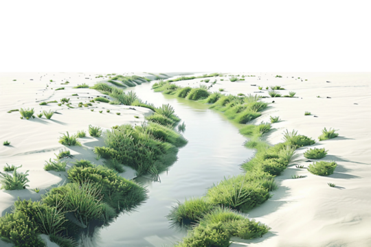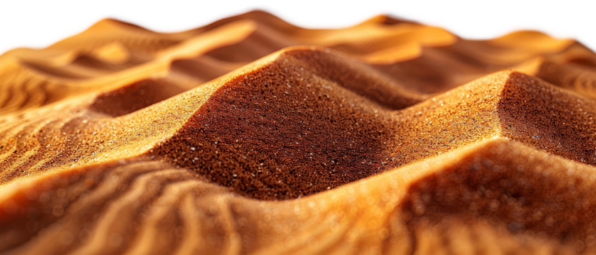 Closeup of rippled desert sand dunes, isolated on transparent background