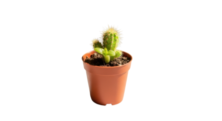Small green cactus plant with spines in a terracotta pot on black background image, Isolated On Png Transparent Background