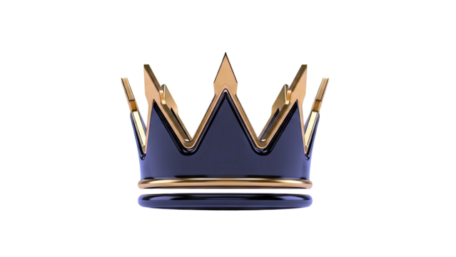 3d illustration of a gleaming golden crown with a smooth polished finish isolated on transparent background