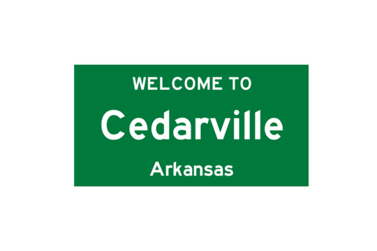 Cedarville, Arkansas, USA. City limit sign on transparent background.