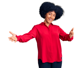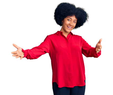Young african american girl wearing casual clothes looking at the camera smiling with open arms for hug. cheerful expression embracing happiness.