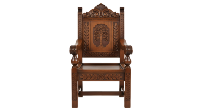 Elegant wooden and cast iron park bench with intricate floral scrollwork, isolated object