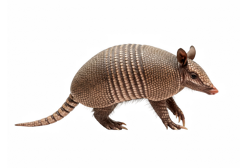 Nine-banded armadillo isolated on transparent background, a mammal with bony armor and a long tail, for wildlife and nature designs