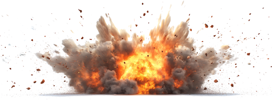 A bomb explosion with debris isolated on a white background PNG.AI GENERATED