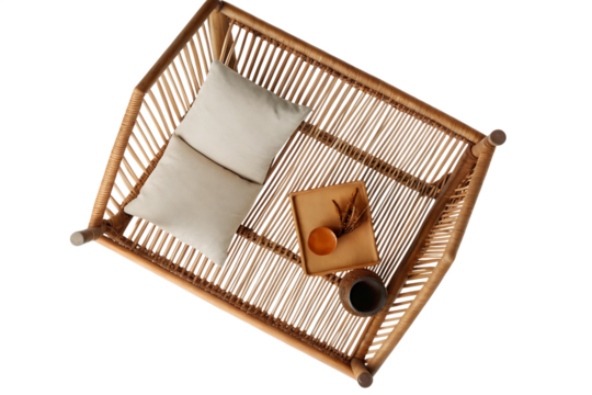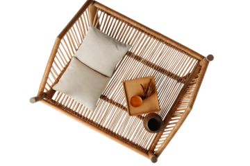 Top view of outdoor cord lounge armchair isolated on white background PNG