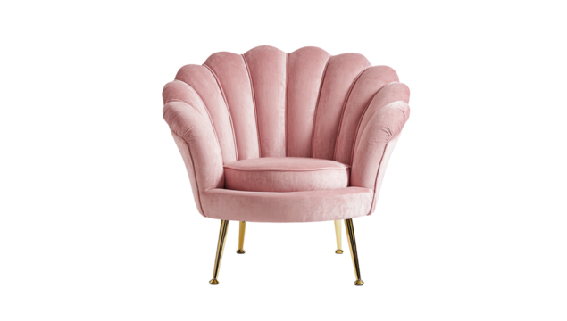 Elegant pink velvet armchair with scallop shell back and gold legs