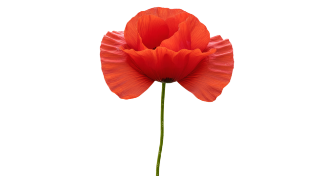 A vibrant red poppy flower set on a transparent background, commemorating Veterans Day and Remembrance Day