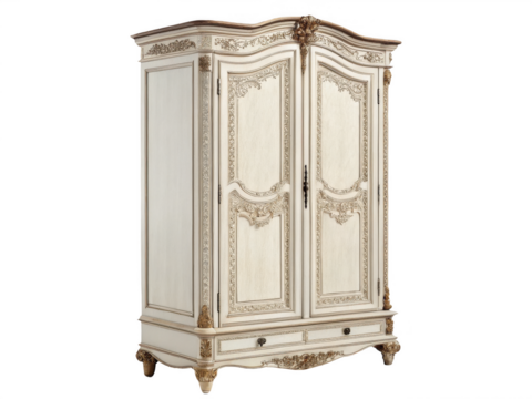 Elegant Cream-Colored Armoire with Intricate Details and Ample Storage Space for Clothing and Accessories