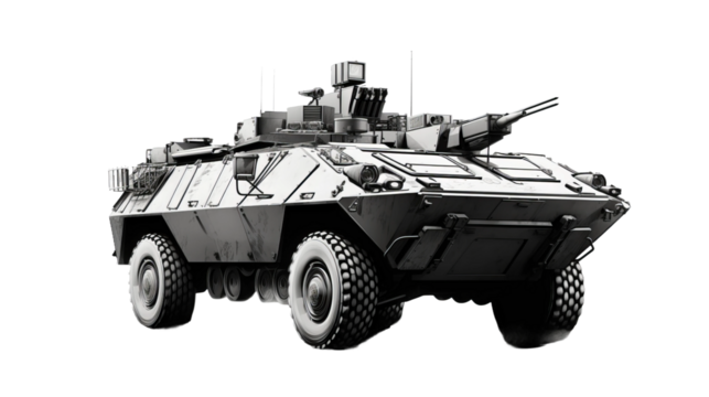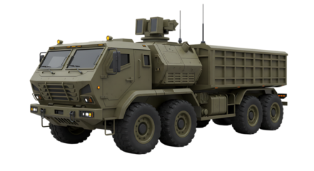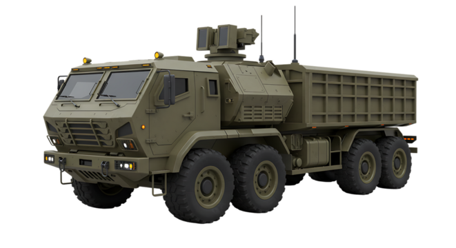 Heavy Military Cargo Truck on Isolated Transparent Background