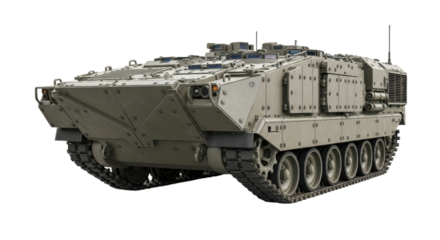 Armored military vehicle with transparent background showcasing durable design and tracks