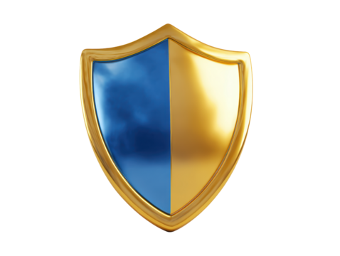 Ancient golden knight s shield isolated on transparent background. Round gold shield isolated on a white background.