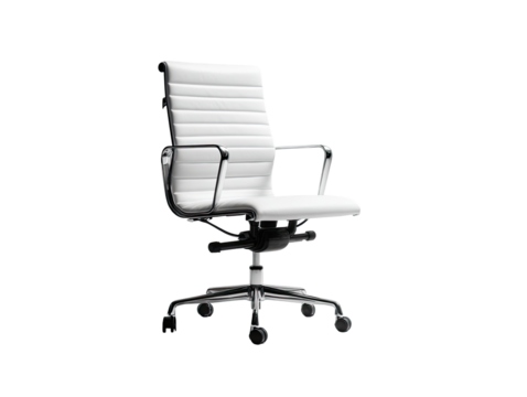 Black office chair with arms, swivel base, and padded seat and back against dark