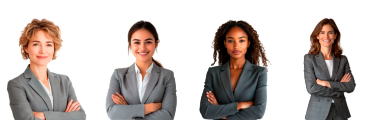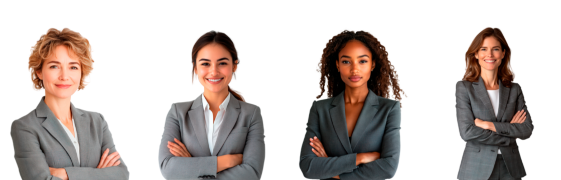 Set of smiling businesswoman with arms crossed portrait professional photo transparent background