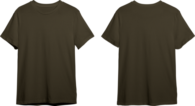 Blank Military Green Isolated Unisex Crew Neck Short Sleeve T-Shirt Front and Back View Mockup Template