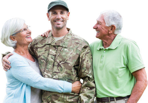 Smiling Military Mother Embraces Her Happy Child isolated on a transparent background
