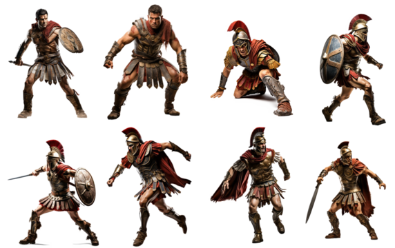 Set of green toy soldiers on a transparent background. The concept of playing soldiers.