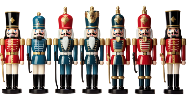 Set of christmas nutcracker toy soldier guard on transparent background. Mockup template for artwork