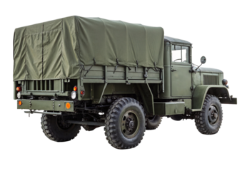 Vintage military truck with covered cargo on transparent background