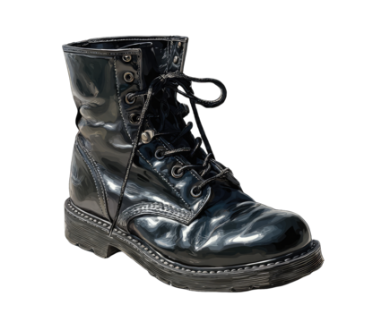 Glossy black leather combat boot