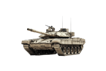 Beige military tank with long barrel and antennae isolated on a transparent background armored vehicle 1