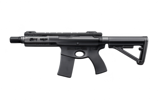 Modern Carbine Rifle in Black Finish, Isolated with transparent background