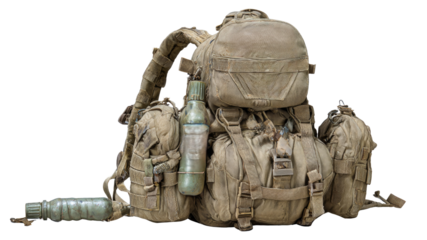 Camouflage military backpack isolated on transparent background