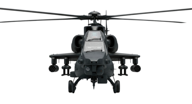 Isolated olive-drab military helicopter with tail rotor and fuel pods for air support missions