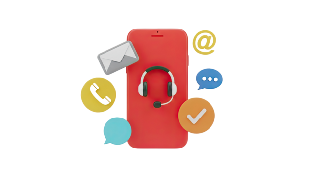 Customer Service and Communication Icons around a Smartphone