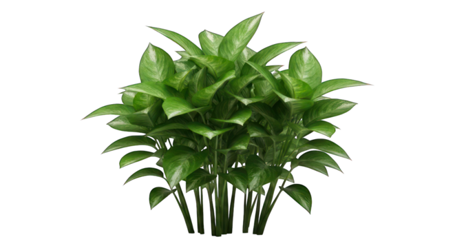 Anubias barter tree, font view, elevation, cutout, isolate, transparent background, Vibrant arum plants with roots, ideal for botanical studies and decorative use