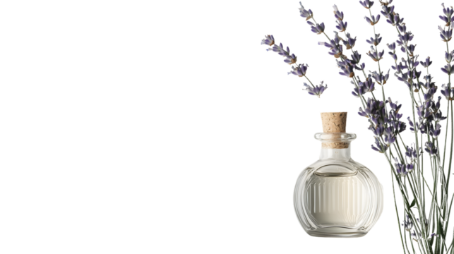 Aromatherapy Bottle with Lavender Flowers Isolated on White Background