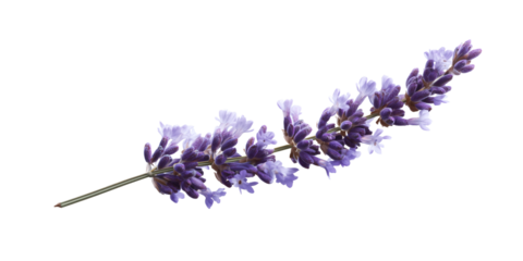Closeup of a sprig of lavender isolated on transparent background, showcasing its delicate purple flowers and aromatic green leaves