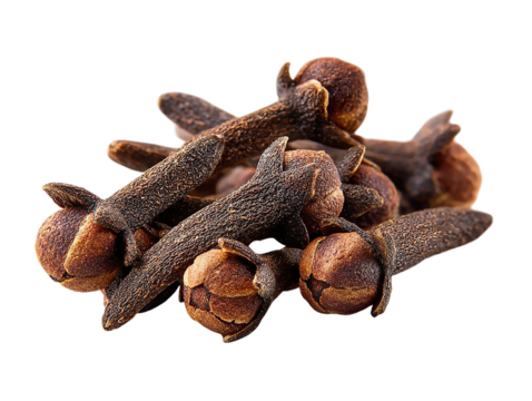 Pile of aromatic cloves isolated on transparent background, a spice used as a culinary ingredient and seasoning