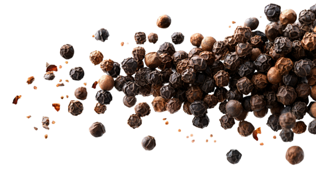 Brown cumin seeds flying, isolated aromatic spice grains with rich earthy texture and natural seasoning particles creating a dynamic herb explosion for food design and gourmet decoration