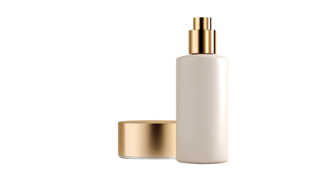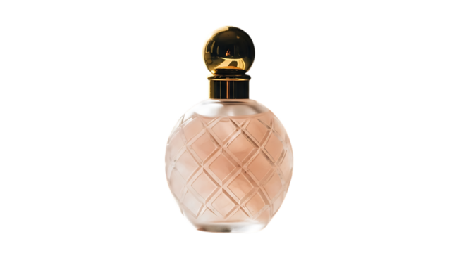 Elegant perfume bottle with a golden cap, isolated on transparent background, showcasing a classic design and luxurious feel, perfect for representing fragrance and beauty in a timeless style