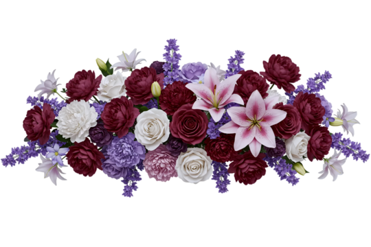 a beautiful flower arrangement with pink and white lilies isolated on a transparent background